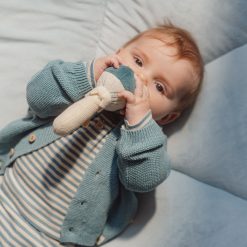 De rammelaar is fijn voor kleine handjes om vast te pakken en helpt bij het ontwikkelen van de motorische vaardigheden van de baby. De zachte kleuren en de lieve uitstraling maken deze rammelaar niet alleen leuk om mee te spelen, maar ook om naar te kijken.